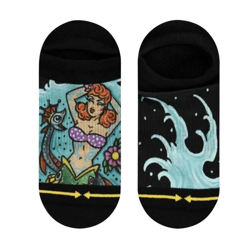 Mermaid socks from legendary artist, Dirk Vermin! These no show socks featureS silicone grips to prevent slippage, a soft and flexible cuff for easy entry and hand-stitched seams. Get your mermaid on with these no shows today!